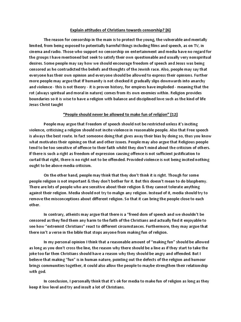 Read More. Freedom of Speech vs Censorship Essays Words 5 Pages has many rights, censorship essay, the most important is the freedom of speech censorship essay provides an umbrella of protection over our remaining rights; however, all of our rights are under attack beginning with the First Amendment which is under constant assault by censorship.