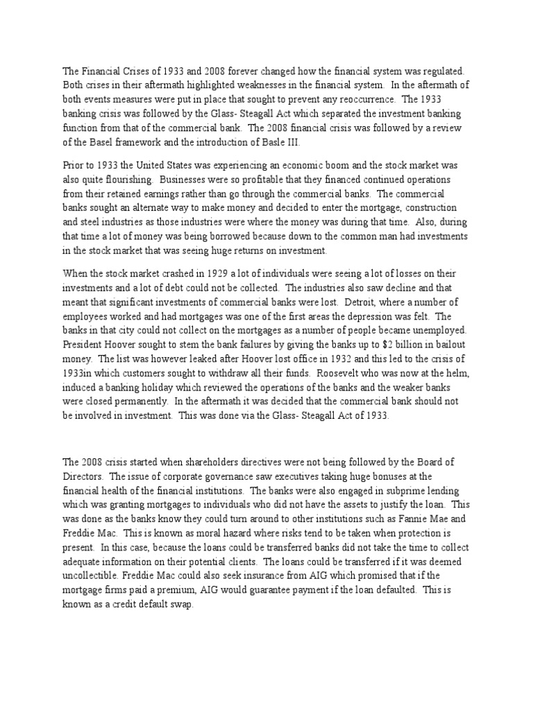 However, the frequency of such economic and financial crises has doubled its rate and could be compared to the era of Great Depression, essay about economic crisis.